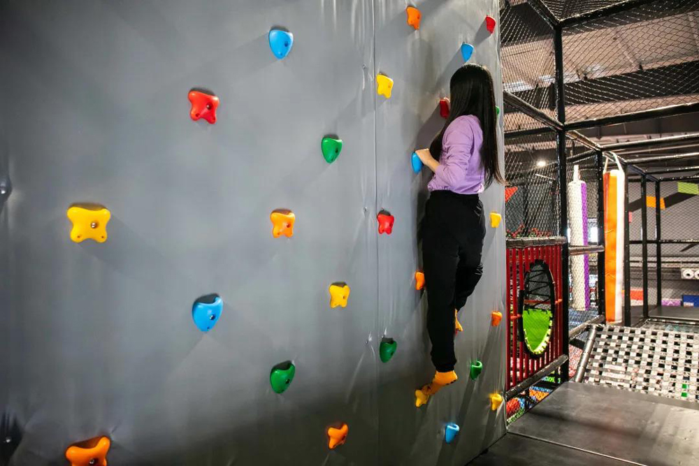 讓人望而生畏的90角度魔鬼滑梯.形態各色的攀巖墻,抱石攀巖,藝術攀巖等等,讓玩家處在一個安全仿真的攀巖環境中,體驗攀登快感,場館內分別設置了兒童攀巖區和成人攀巖區,已滿足不同的人群。造型奇特的攀爬網錯落編織,營造一個獨立的別樣空間。還有比較適合幼兒的區域,如軟包區,角色扮演,淘氣堡,沙池等等,游玩項目多的眼花繚亂。更有運動達人必玩項目,旱地冰壺,射箭,保齡球,充分體驗運動競技的樂趣和社交。電玩區擁有各色各樣的體感電動游戲。周圍還設有餐廳和休息區,玩累了可以休息下享受美食。