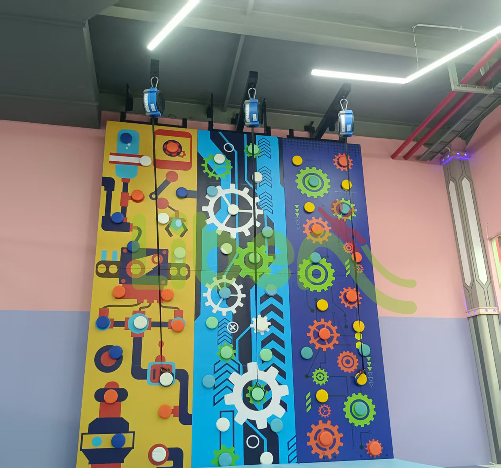 攀巖墻則是勇敢者的舞臺。不同難度級別的攀巖路線,搭配色彩鮮艷、形狀各異的巖點,激發(fā)著孩子們的挑戰(zhàn)欲望。他們手腳并用,努力向上攀登,每一次艱難的攀爬、每一次成功的登頂,都讓孩子們收獲滿滿的成就感,同時也鍛煉了力量與毅力。