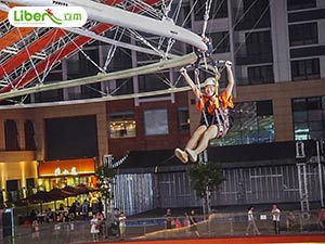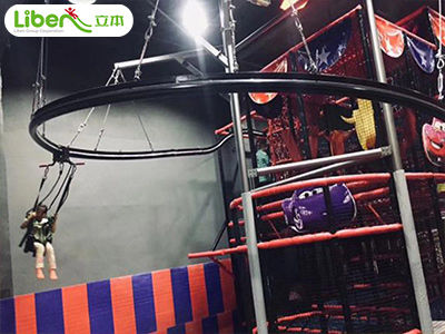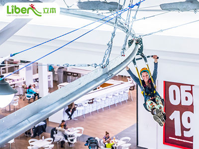 雙重保護安全系統(雙側滑輪防護系統:采用雙側三組皮滑輪安裝裝置,游玩者兩手緊握兩側手柄雙側滑輪接口尺寸小于中心滑道防止墜落,大大增加了安全性,另外,在設備上安裝的電子滑輪回縮系統將滑輪每次使用后的終點引導起跑線平臺)