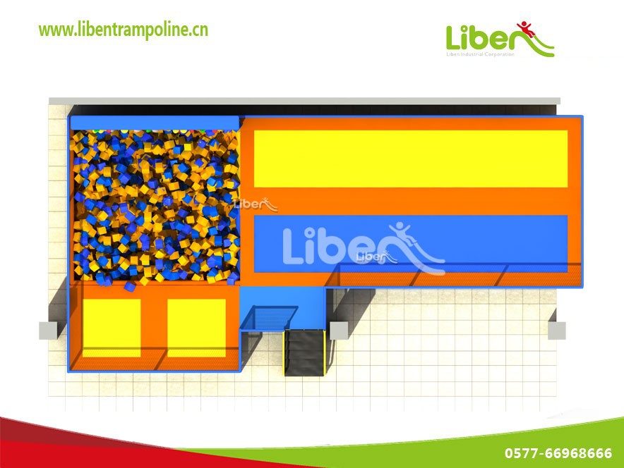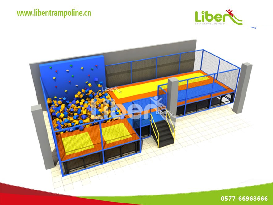 兒童室內組合超級蹦床公園里面項目總共有三個,一個是自由蹦,跳水池